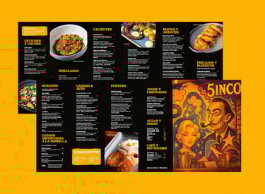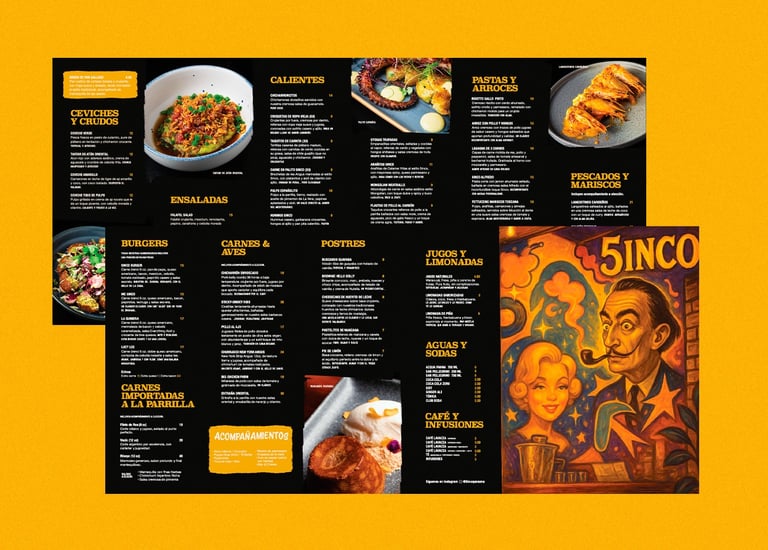 Proyecto de diseño de menú para 5inco. buscando en la inspiración en los inicios de la marca.